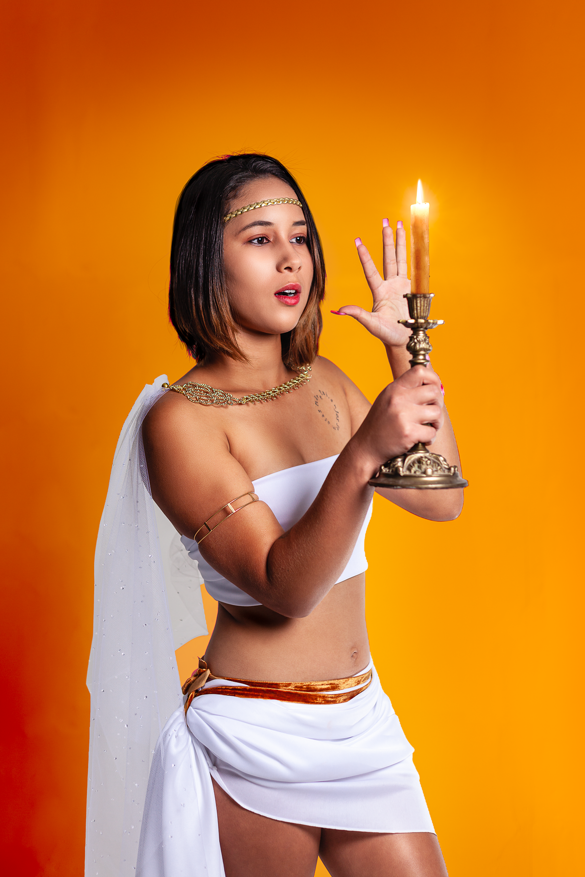 No projeto Deusas Gregas do Olimpo, quem deu vida a Héstia foi a modelo Viviane Pereira que veio de São José do Almeida cidade vizinha para clicar com a gente.